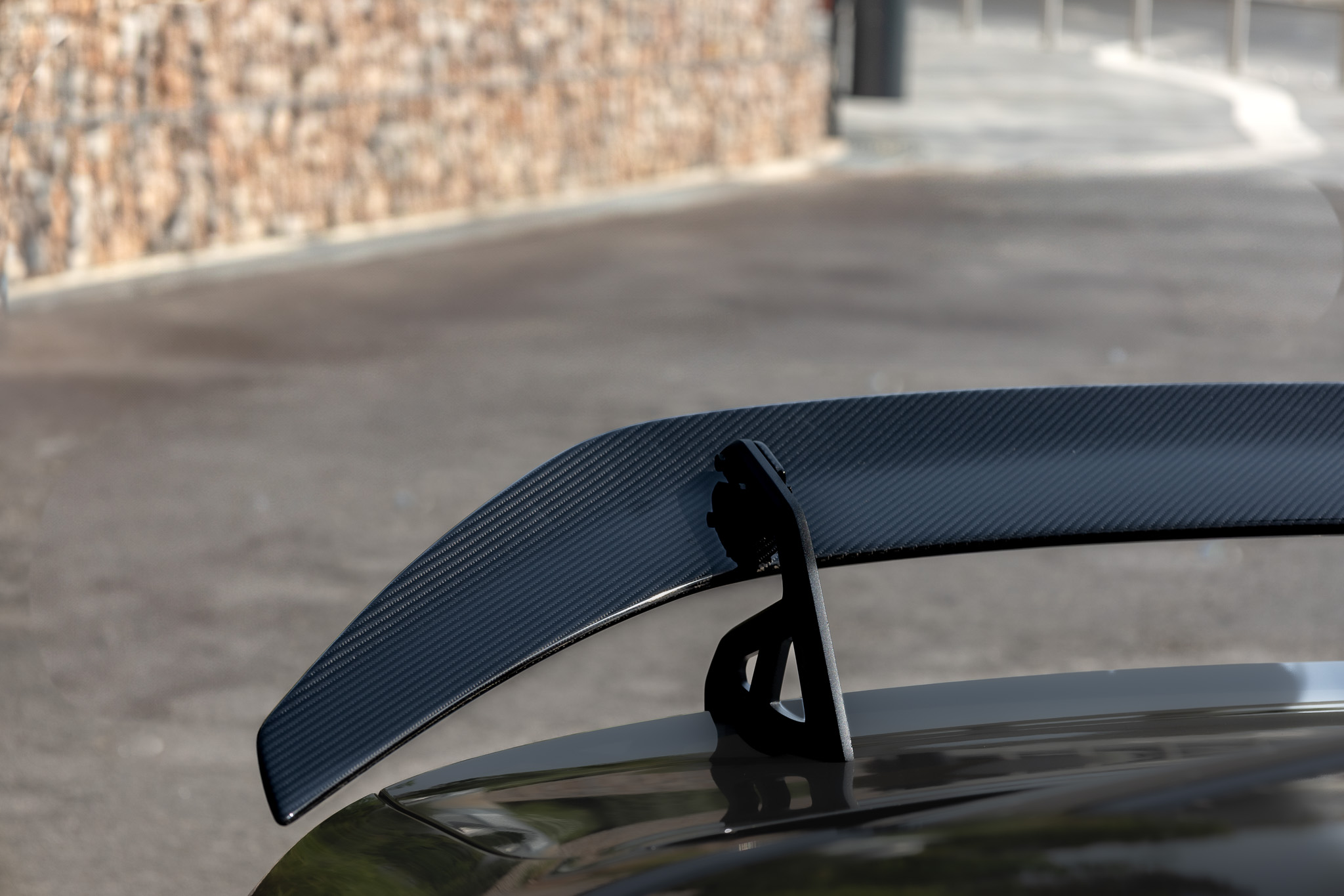 Every carbon detail has been carefully chosen and aligned: from the razor-sharp ADRO front lip and diffuser to the massive rear wing that dominates the rear profile. We complemented the base kit with pre-preg carbon fiber side skirts and mirrors for extra continuity and flow.