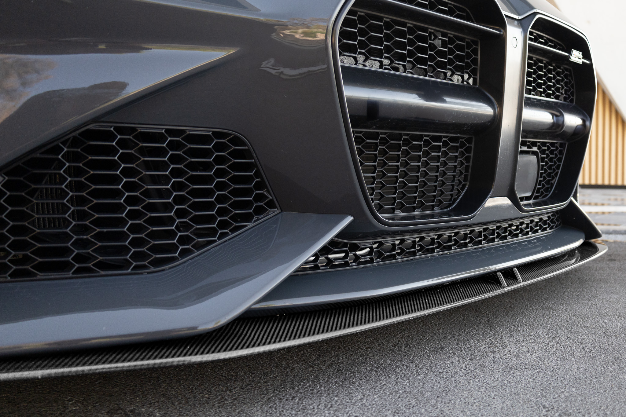 Paired seamlessly with the G82’s bold factory bumper, the lip transforms the front fascia into something much more menacing. The carbon weave reflects perfectly under sunlight, matching the intensity of the rest of the kit while adding definition to the lower front profile.