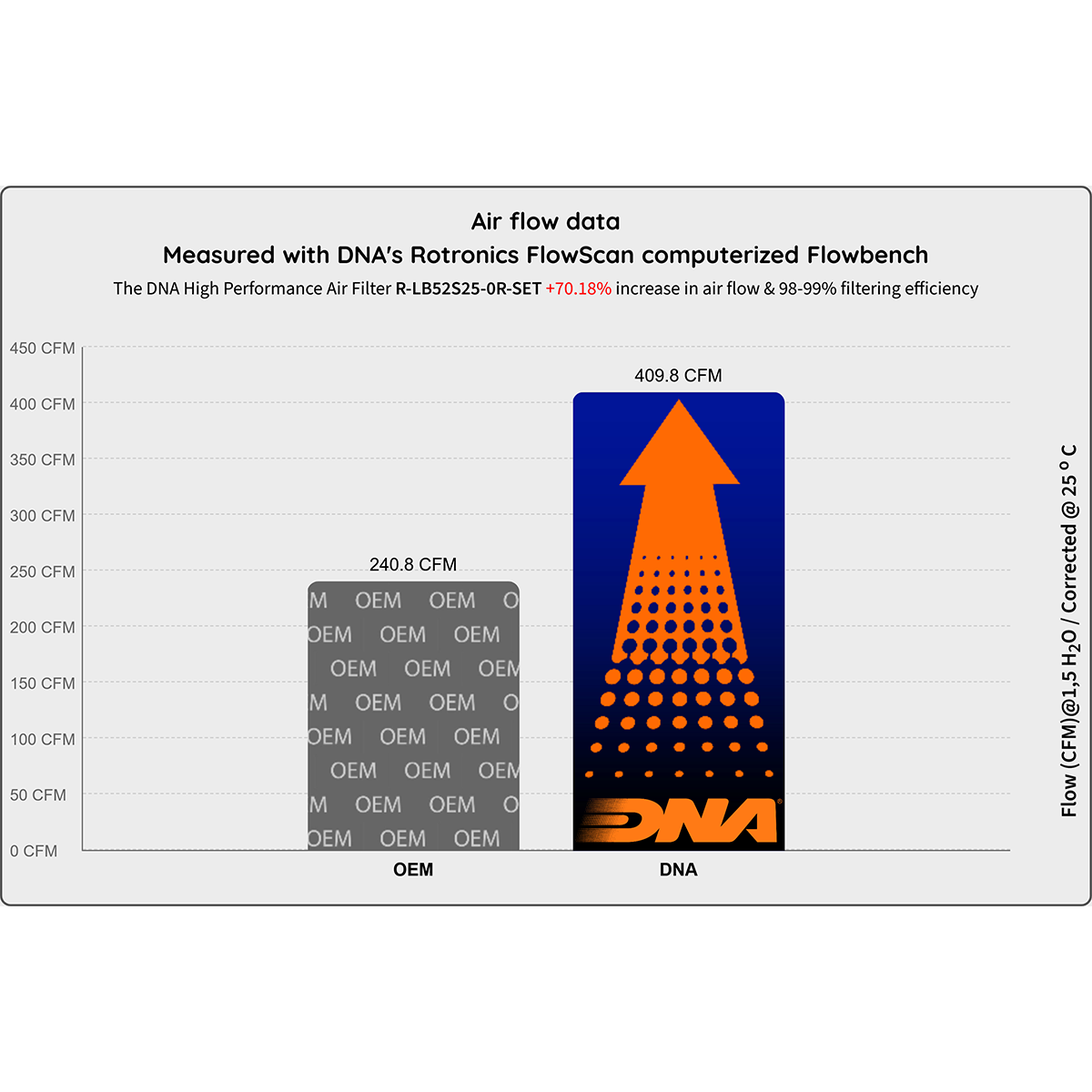 DNA High Performance Air filters help provide optimal flow and maximum engine performance and fuel efficiency through a world-class filtration design that removes 98% of air contaminants. Each filter is designed and manufactured to meet or exceed all original equipment operating specifications.