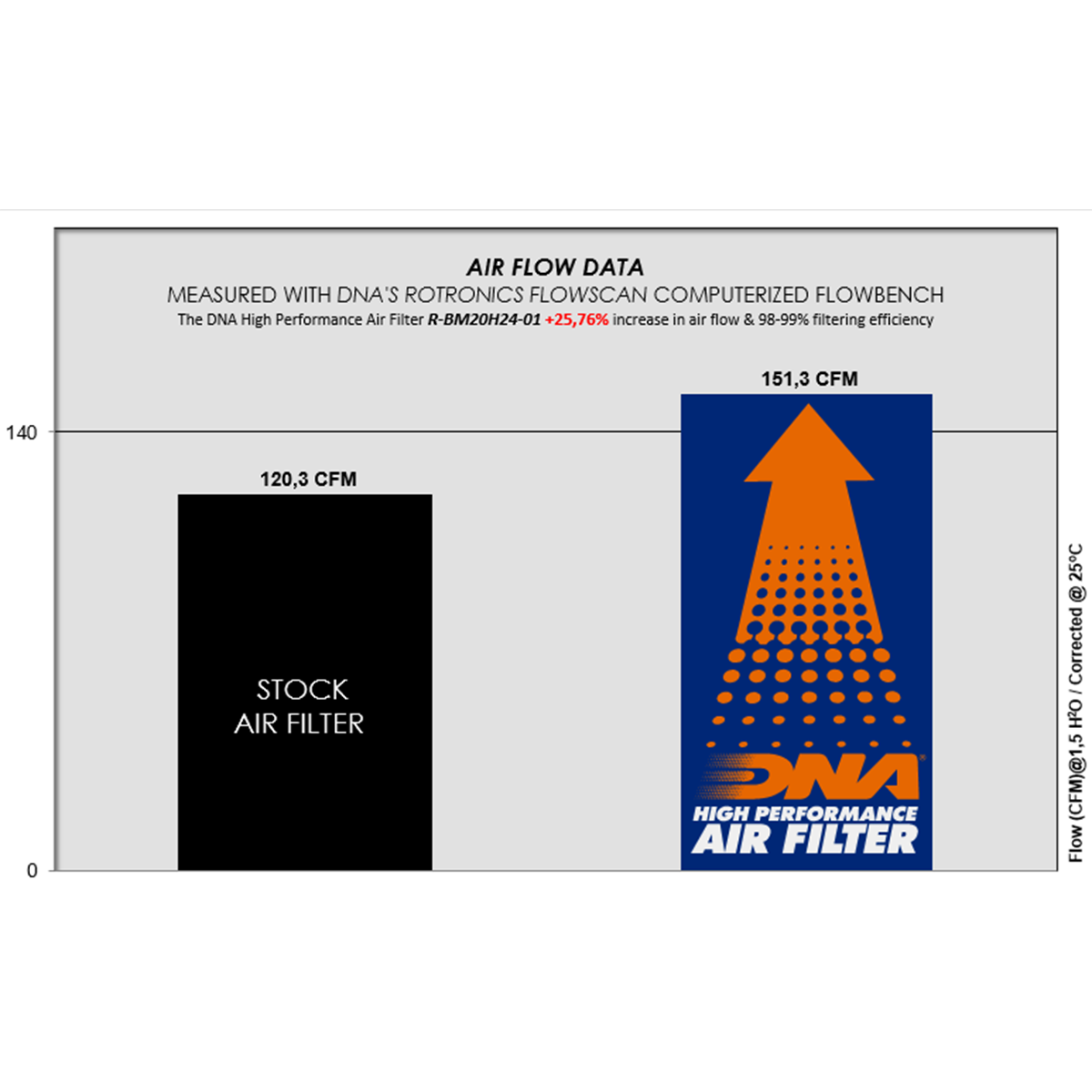 DNA High Performance Air filters help provide optimal flow and maximum engine performance and fuel efficiency through a world-class filtration design that removes 98% of air contaminants. Each filter is designed and manufactured to meet or exceed all original equipment operating specifications.