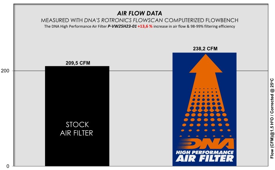 DNA High Performance Air filters help provide optimal flow and maximum engine performance and fuel efficiency through a world-class filtration design that removes 98% of air contaminants. Each filter is designed and manufactured to meet or exceed all original equipment operating specifications.
