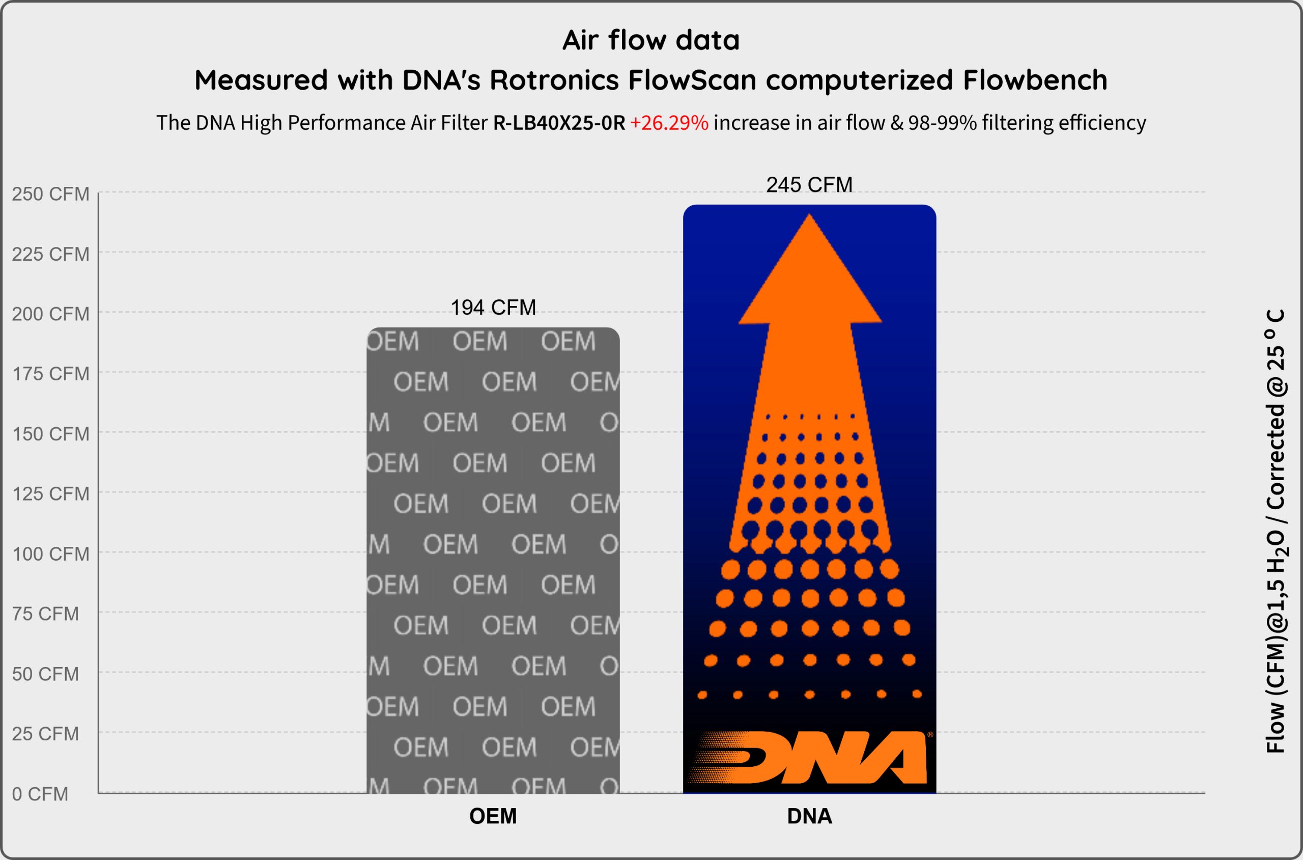 DNA High Performance Air filters help provide optimal flow and maximum engine performance and fuel efficiency through a world-class filtration design that removes 98% of air contaminants. Each filter is designed and manufactured to meet or exceed all original equipment operating specifications.