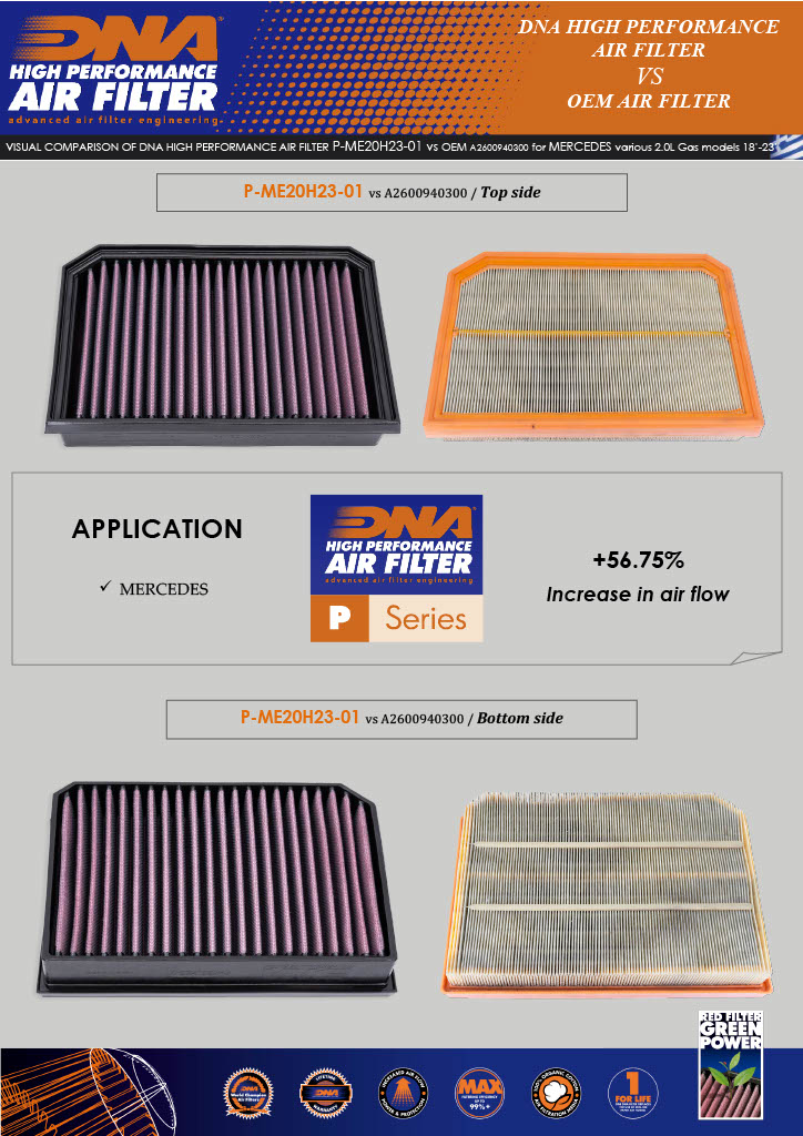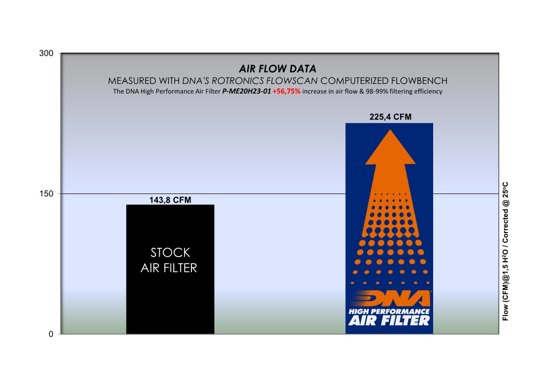 DNA High Performance Air filters help provide optimal flow and maximum engine performance and fuel efficiency through a world-class filtration design that removes 98% of air contaminants. Each filter is designed and manufactured to meet or exceed all original equipment operating specifications.