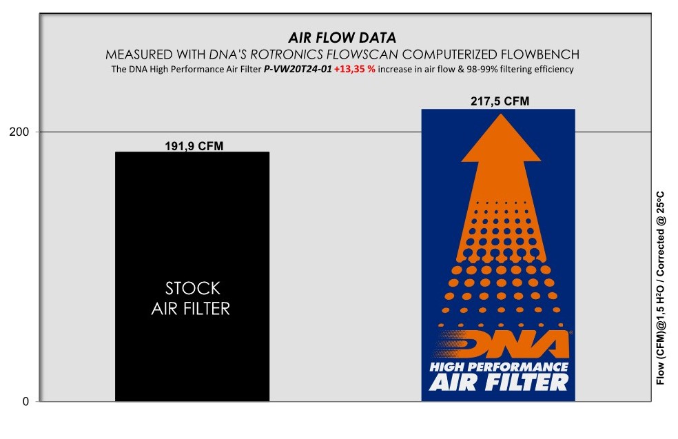 DNA High Performance Air filters help provide optimal flow and maximum engine performance and fuel efficiency through a world-class filtration design that removes 98% of air contaminants. Each filter is designed and manufactured to meet or exceed all original equipment operating specifications.