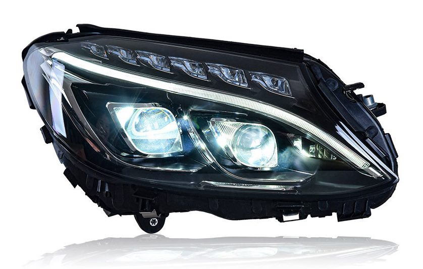 Mercedes Benz C Class W205 LED headlight upgrade option. Enhance the look and the lighting of your car with plug and play installation.