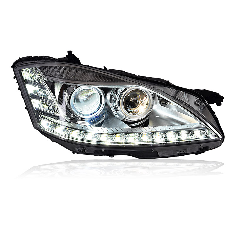 Mercedes Benz S Class W221 LED headlights upgrade option. Enhance the look and the lighting of your car with plug and play installation.